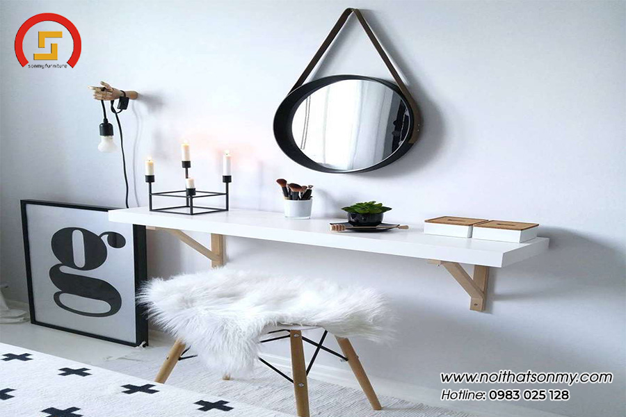 Giải pháp tối ưu nhất hiện nay chính là sử dụng bàn phấn treo tường. Không chỉ đáp ứng được nhu cầu sử dụng mà còn tiết kiệm được không gian. Phòng ngủ của bạn sẽ trở nên rộng rãi và thông thoáng hơn rất nhiều.