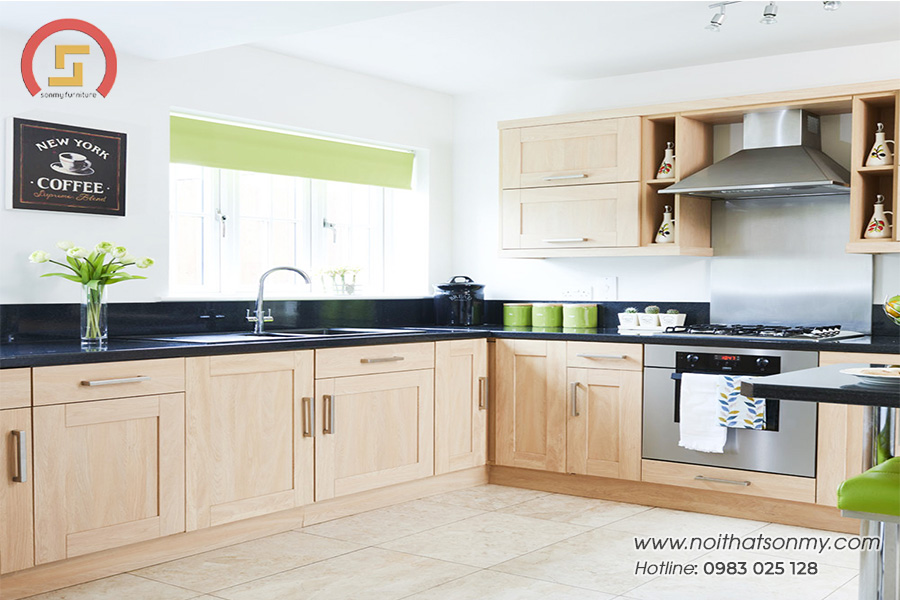 Với những căn nhà phố có diện tích vừa phải, gia chủ nên chọn tủ bếp chữ L. Chúng chứa được nhiều đồ đạc hơn, giúp căn phòng thêm gọn gàng, sạch sẽ. Không những thế, tủ bếp chữ L còn tận dụng được nhiều góc chết. Bạn có thể treo đồ đạc hoặc sắp xếp chúng một cách hợp lý nhất để căn bếp thêm phần gọn gàng và tiện nghi.