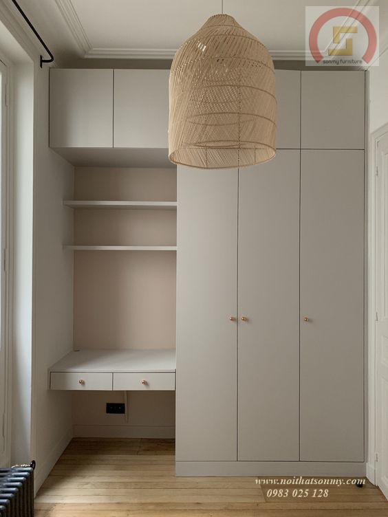 Nội thất Sơn Mỹ nhận đóng đặt các mẫu tủ âm tường thiết kế theo yêu cầu, được làm bằng chất liệu gỗ tự nhiên, gỗ công nghiệp. Thiết kế và sản xuất các loại tủ áo có cánh lùa hiện đại hay tủ áo có cánh mở đẹp. Nhu cầu làm đẹp nội thất phòng ngủ bằng những chiếc tủ áo đẹp ngày càng cao, hiểu được điều đó Nội thất Sơn Mỹ chúng tôi luôn thiết kế và cập nhật những mẫu tủ quần áo âm tường đẹp nhất và hợp thời trang với xu thế ngày nay.
